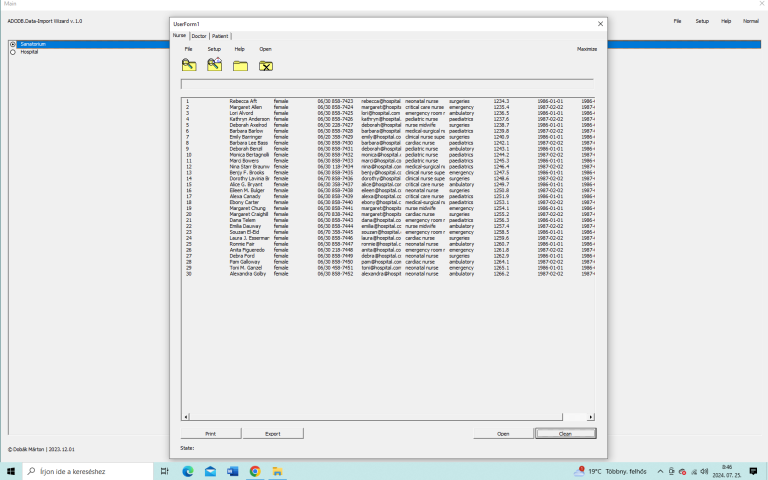 Találkozhatunk olyan esettel is, mikor elszigetelt munkaállomásokon Excel táblázatban kezelt adatokat kell összesíteni SQL-szerveren. A főmenüben kiválasztjuk az adatbázist, mellyel dolgozni szeretnénk. Ezt követően megnyílik egy ablak, melynek segítségével az adatbázishoz tartozó táblákat egy párbeszédpanelen kiválasztott Excel fájl azonos nevű munkafüzetének soraival tölthetjük fel.