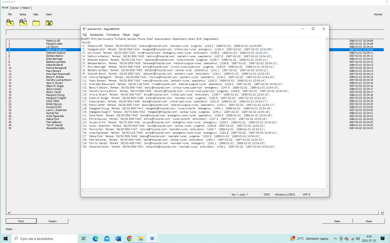 A megtisztított adatokat nem szükséges egy lépésben exportálni, a DML parancsot szöveges