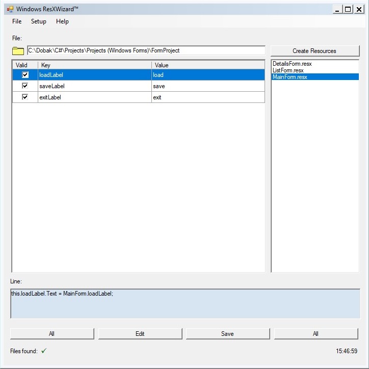 A szoftverek vezérlőfelületeinek feliratozását támogató fájlok létrehozásához és szerkesztéséhez használhatjuk a fenti erőforrás-fájl kezelő kiegészítő alkalmazást. Az eszköz
